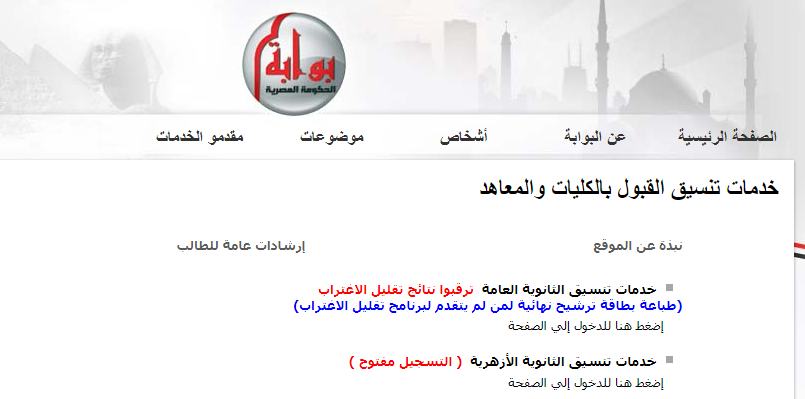 طباعة بطاقة الترشيح متاح الان على موقع الحكومة المصرية اطبع بطاقة ترشيحك للكلية